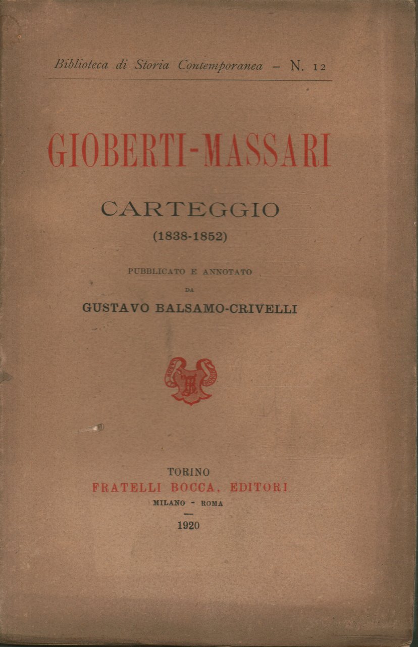 Gioberti-Massari Carteggio (1838-1852)