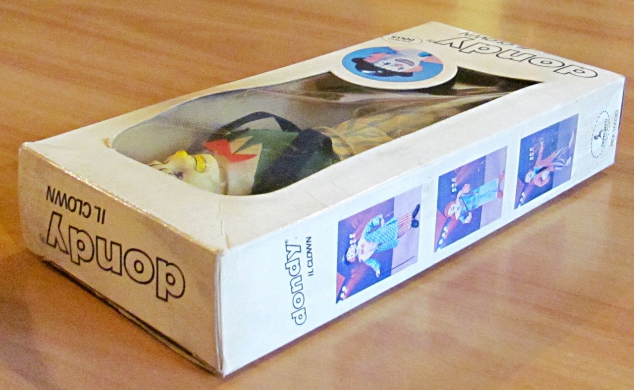 Giocattolo in Scatola Originale DONDY IL CLOWN con accessori, mai Giocato, anni '70