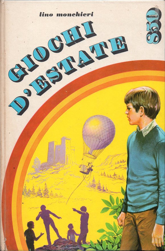 In-8° (23,2 x 15,5 cm), pp. 124, (4), legatura editoriale illustrata a colori. Qualche normale segno d'uso e del tempo alla legatura, in particolare, dorso lievemente scurito, con titoli parzialmente scoloriti, probabilmente, per esposizione alla luce, e una piccola abrasione all'altezza dell'angolo superiore esterno del piatto anteriore. Con illustrazioni in nero e in azzurro, e a colori, nel testo. Piccolo restauro, con carta giapponese, nella piegatura tra la guardia e la controguardia posteriori. Normale, leggera patina del tempo alle pagine, con lievi arrossature ai margini, per il resto, ben conservato. Volume numero 5 nella collana «850». Indice. Presentazione. Giro si presenta. Il baule. Ci voleva. Partenza in macchina, arrivo a piedi. Si fonda la «Società dell'aerostato». L'aerostato è bello, ma scomodo. L'esilio tra i carbonai. Nasce la «So-tutto». I fondi per l'asilo. Come una leggenda può aiutare una colonia estiva. Alla ricerca del tesoro. Nasce il museo. Alla caccia del tasso. Si parte per il centro della terra. Il mare ci vuole! Le sorprese non mancano. Arriva il sindaco. Le tigri di Mompracem. Il ricevimento in municipio. Addio ai monti.