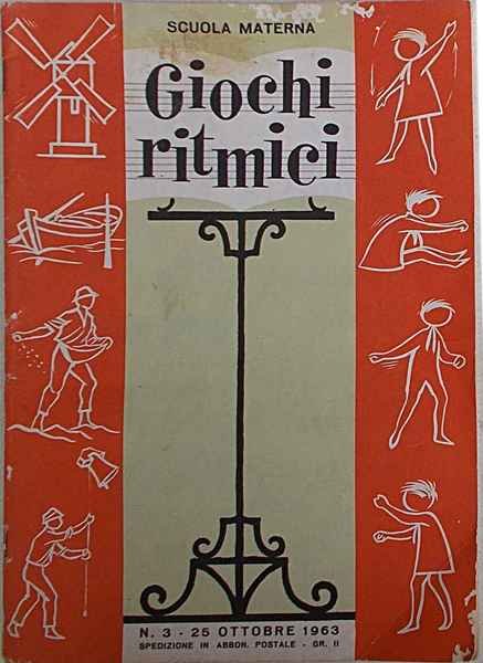 In 8° (cm. 24,5 x 17); pagg. (36) numerate da 73 a 117; con illustraz. e pentagrammi n.t.; leggera cartonatura origin. illustr. a coll. Lievi tracce d'umido. VG-. ** Numero monografico di "Scuola materna" (Anno L n. 3 ottobre 1963)