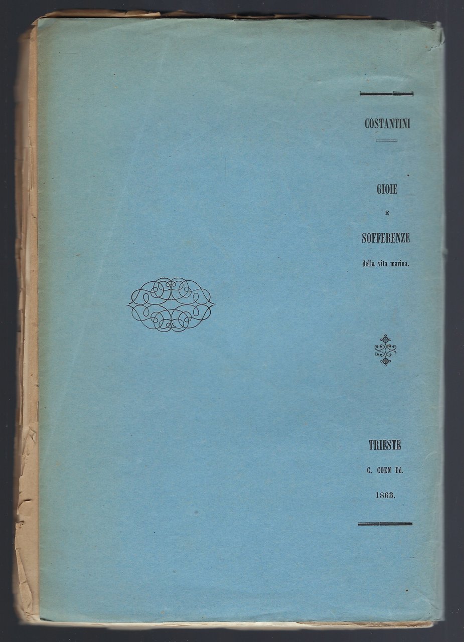 Coperta un po' usurata, con piccoli strappi e pezzettini mancanti al dorso.