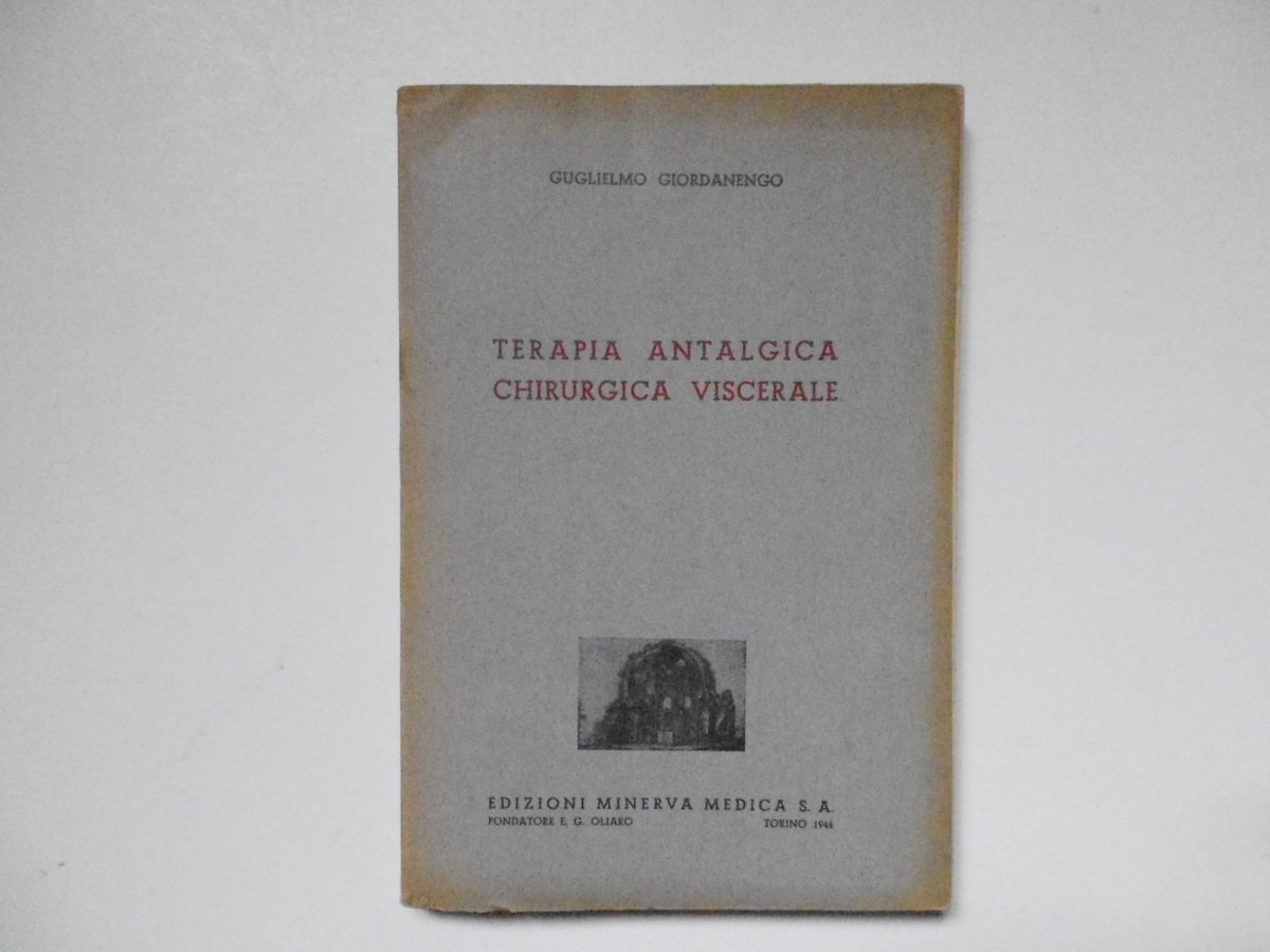 G. Giordanengo, Terapia Antalgica Chirurgica Viscerale Edizioni Minerva Medica, Torino, 1944. Cm. 24,5x16,5; pp. 357; ill. n. t. in b. n. Cartoncino edit. blu. Condizioni di conservazione Esemplare in buono stato di conservazione. In qualche pag. alcune annotazioni a matita. Ingiallimento ai margini delle pagine interne e della coperta. SETT60.L23357G
