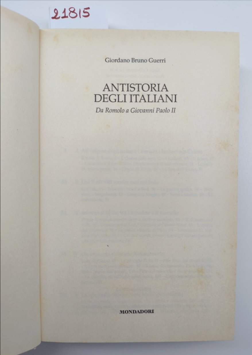 Giordano Bruno Guerri Antistoria degli italiani da Romolo a Giovanni Paolo II Mondadori 1° edizione 1997