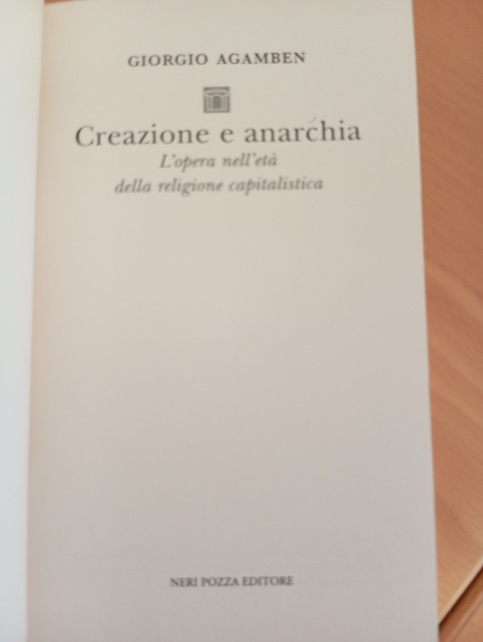 Giorgio Agamben, Creazione e anarchia, Neri Pozza, 2007