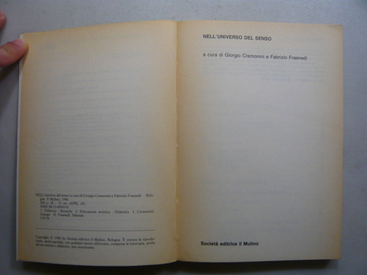 Giorgio Cremonini e Fabrizio Frasnedi,NELL’UNIVERSO DEL SENSO,Il Mulino 1986