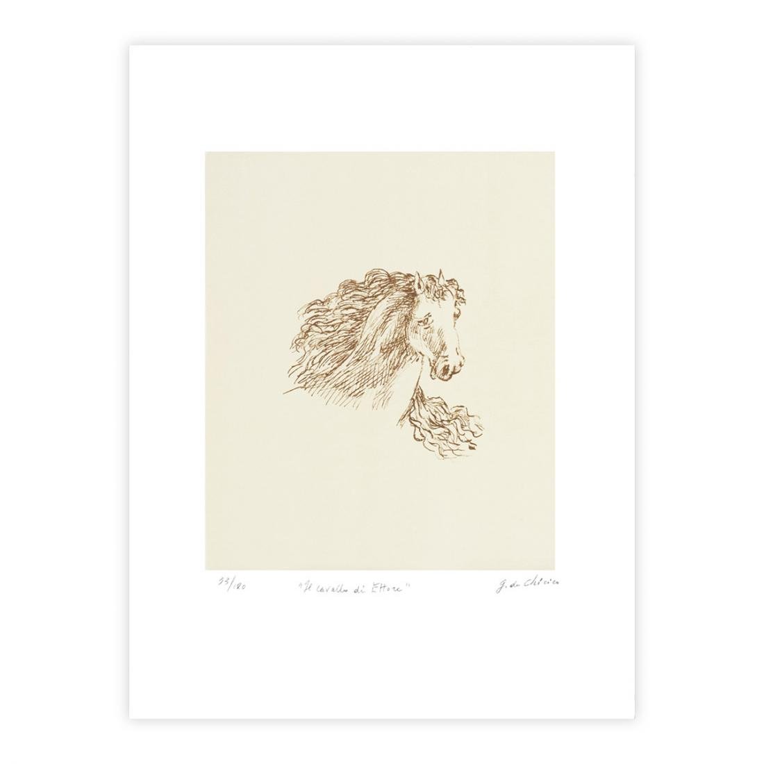 Giorgio De Chirico (1888-1978)Titolo dell'opera: Il cavallo di Ettore, 1971Litografia Originale mm 300x245 (cm 47x35)Firmata e numerata a matita dall'Artista: 53/120Completa di cornice in legno come da immaginiBibliografia e Pubblicazioni:Giorgio De Chirico Catalogo dell'Opera grafica 1969-1977Edizioni Bora Ref. Pagina 142 figura 119Certificato di Autenticità rilasciato da :Alberto Caprini Stampatore in Roma (Allegato)