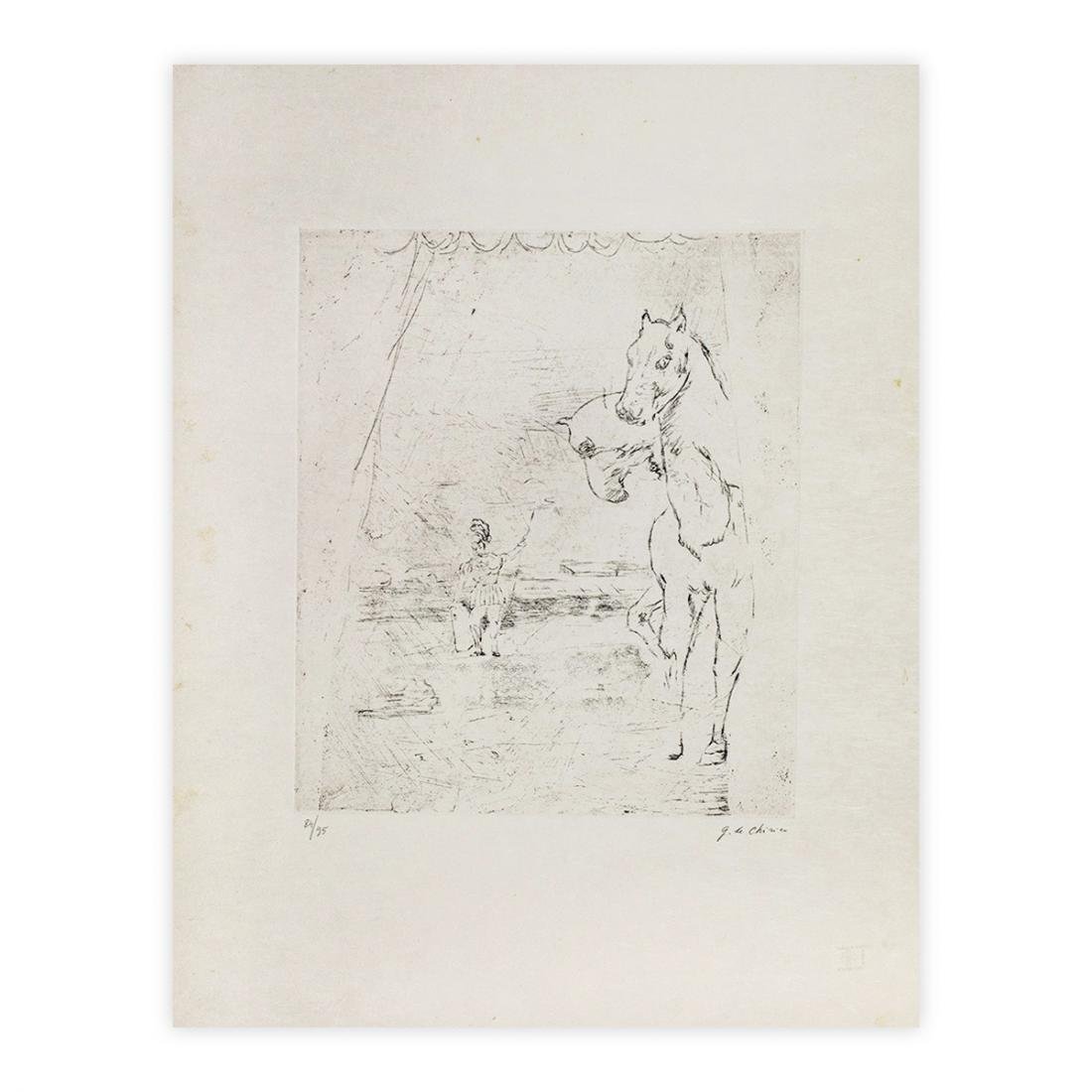 Giorgio De Chirico (1888-1978)Titolo dell'opera : Il ritorno del guerriero,1972Firmata e numerata a matita dall'artista : 84 / 95Incisione a vernice molle mm 375 x 320 ( cm 65 x 50 )Completa di cornice in legno come da immaginiBibliografia e Pubblicazioni:Giorgio De Chirico Catalogo dell'Opera grafica 1969-1977Edizioni Bora Ref. Pagina 39 figura 26Certificato di Autenticità rilasciato da :Alberto Caprini Stampatore in Roma (Allegato)