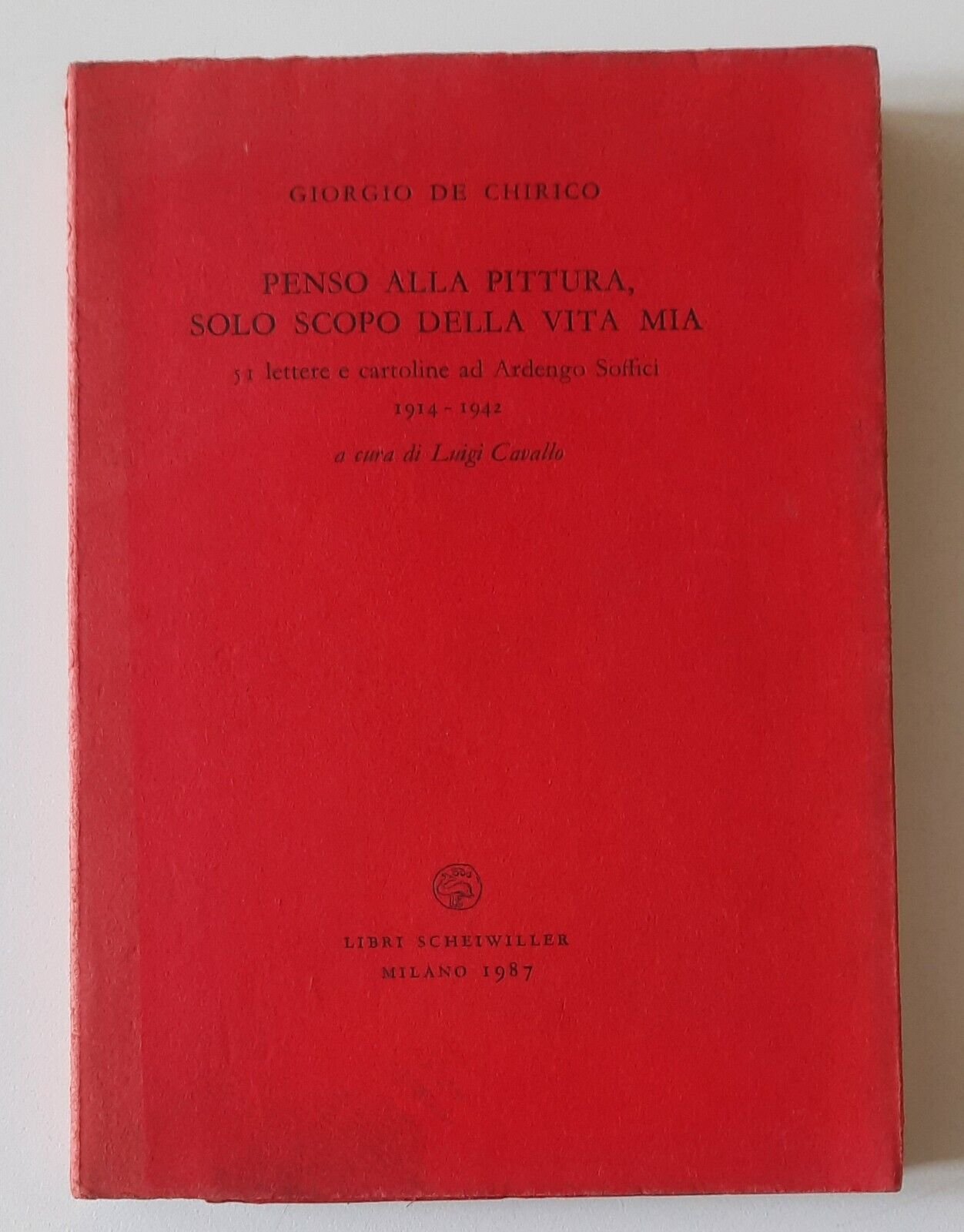 GIORGIO DE CHIRICO PENSO ALLA PITTURA SOLO SCOPO DELLA VITA MIA SCHEIWILLER 1987In 8°, legatura editoriale, copertina illustrata.In ottime condizioni, lievi macchie alla copertina.