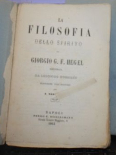 <p>CODICE 3126 GIORGIO G. F. HEGEL LA FILOSOFIA DELLA NATURA CON ILLUSTRAZIONI DI CARLO LUDOVICO MICHELET - TRADUZIONE DALL'ORIGINALE PER A. NOVELLI A F. ROSSI-ROMANO, 1864 COPERTINE MUTE La Filosofia della Natura di Giorgio G. F. Hegel con le illustrazioni di Carlo Ludovico Michelet ----- Traduzione dall'originale per A. Novelli ------------------------------------------------------------------------------------------------------------------------------ Note bibliografiche: 2 volumi di cm. 12 x 18 COPERTINE MUTE pp. VIII-362 - XI-298 segni del tempo in buono stato. Rara prima edizione italiana</p>,