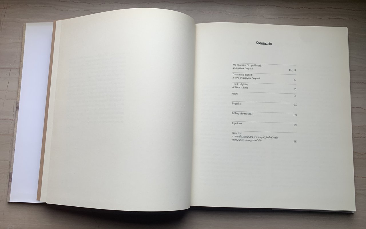 I ed.: gennaio 2001. Catalogo della mostra Bologna Galleria Mareschi (Via Mascella 116/B), Cortina (Cortina d'Ampezzo, Belluno, Corso Italia 114), Monte-Carlo (Monaco) (7 Galerie du Sporting - Place du Casino), 20 gennaio - 11 marzo 2001. Collana Grandi Mostre a cura di Franco Basile, 5. Ideazione: Italo Spagna. Apparati bio-bibliografici: Lorenza Selleri. Coordinamento e ricerche: Carlotta D'Addato. VIII grande quasi quadro/200/cart./sovraccoperta patinata (al primo piatto della sovraccopeerta: Natura morta, 1948, part.). Con illustrazioni in b/n nel testo e f.t. e a colori f.t.. Fogli di guardia in cartoncino ruvido color sabbia. Fotografie: Antonio Masotti. Coordinamento apparato iconografico: tiziana Sanzone. Progetto grafico: Renato Piccinini. Stato buono (leggera usura della sovraccoperta - sovraccoperta leggermente brunita).