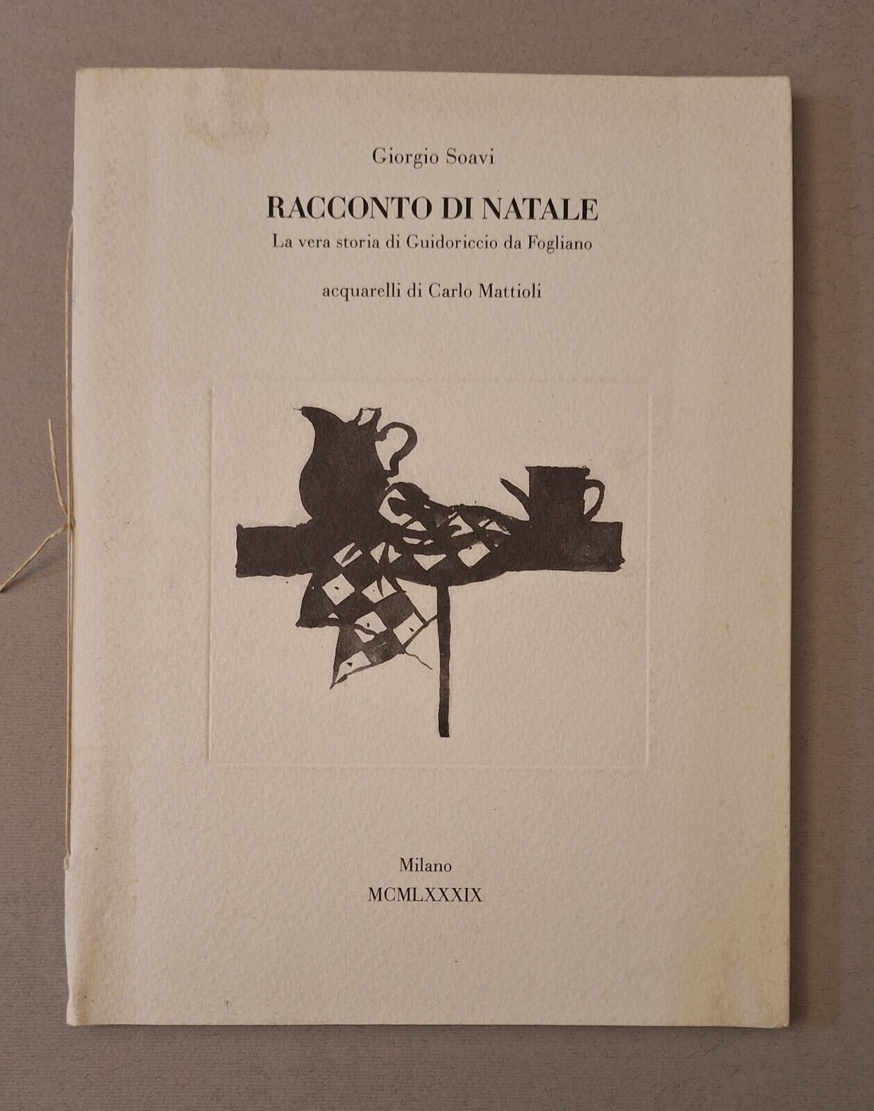 GIORGIO SOAVI RACCONTO DI NATALE ACQUERELLI C. MATTIOLI In 8°, legatura editoriale, copertina illustrata.Copia con dedica di giorgio soaviIn ottime condizioni, lievissimi segni alla copertina.