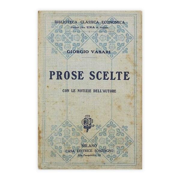 Autore: Giorgio Vasari Titolo: Prose Scelte Sottotitolo: Con le notizie dell'autore Edizione: Milano - Casa Editrice Sonzogno Dimensioni: 12 x 18,5 cm c.a. Pagine: 364 Copertina: Brossura Condizioni: Ottime come da foto