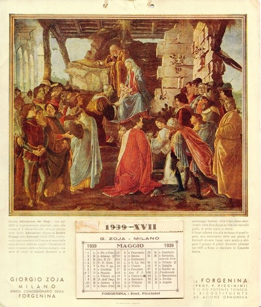 Giorgio Zoja Milano, concessionario Forgenina. Calendario pubblicitario 1939.