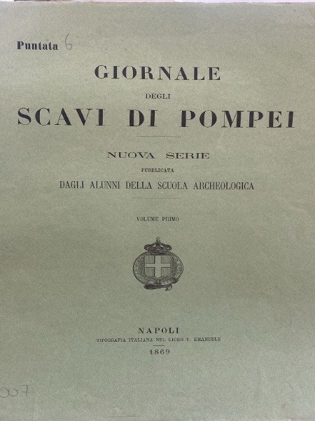 GIORNALE DEGLI SCAVI DI POMPEI GENN FEBB 1869 VOLUM. 1