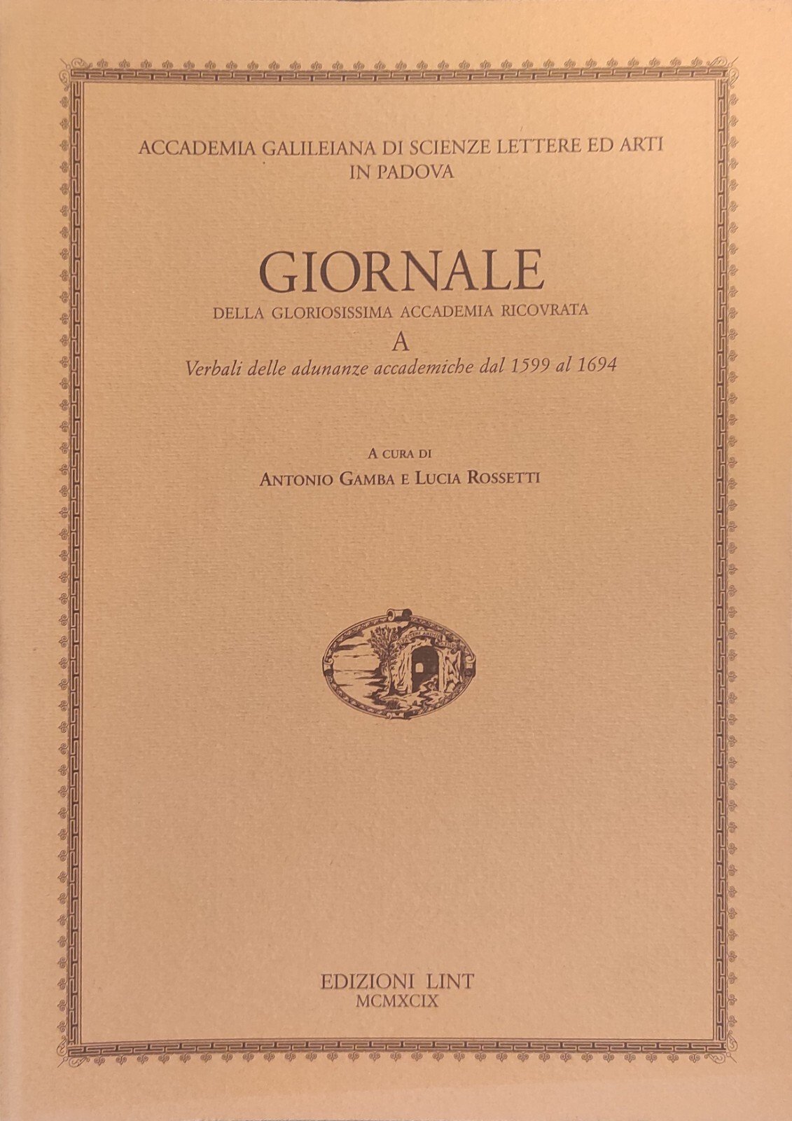 GIORNALE DELLA GLORIOSISSIMA ACCADEMIA RICOVRATA A VERBALI DELLE ADUNANZE ACCADEMICHE DAL 1599 AL 1694