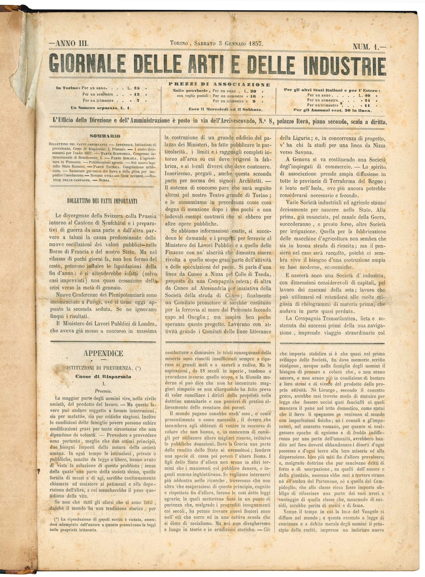 Annata completa del 1857 (anno III), composta da 103 numeri, della "Gazzetta delle campagne", interessante periodico torinese.