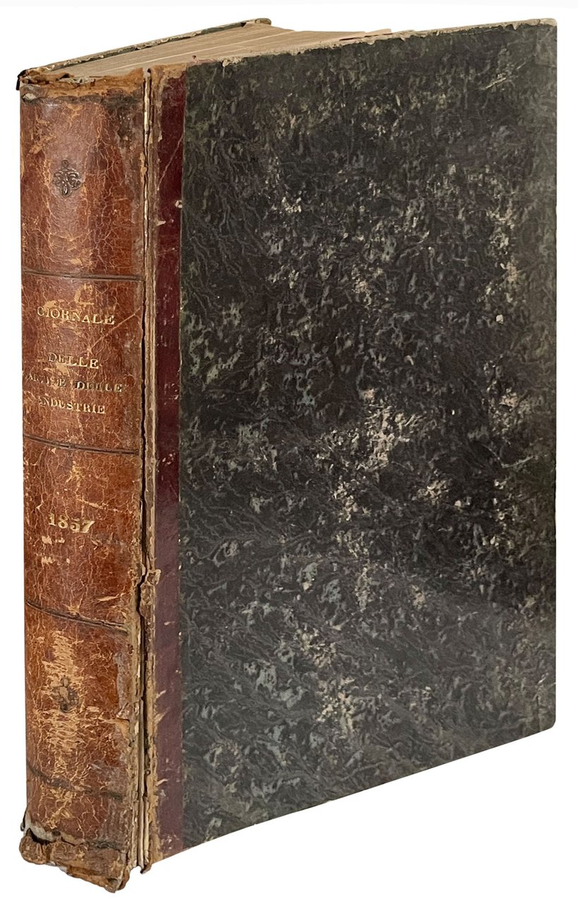 Mezza pelle coeva con titolo in oro al dorso, piatti rivestiti con carta marmorizzata. Lievi abrasioni al dorso e ai piatti, piccole mancanze alle cuffie. Il piatto anteriore risulta quasi completamente staccato.