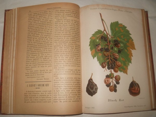 - fascicoli rilegati in volume con mezza tela e copertine marmorizzate, pag. 580, formato cm. 18 x 26, svariate incisioni e una ventina di cromolitografie a colori