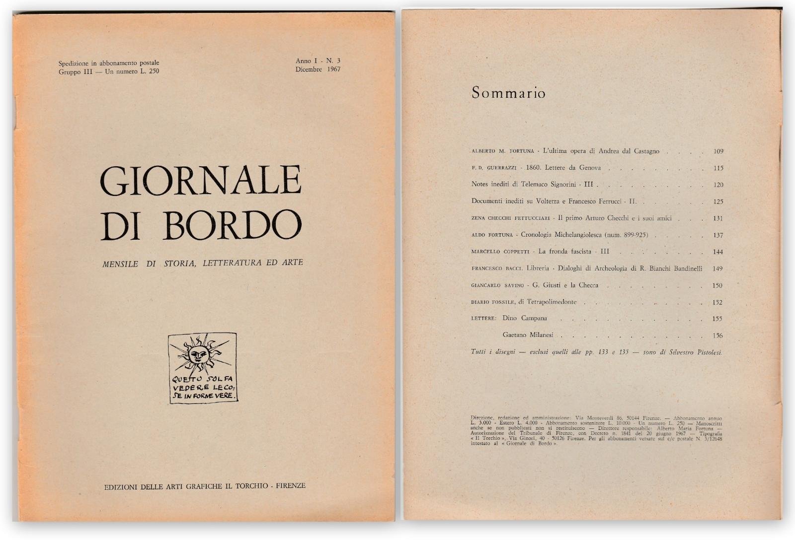 GIORNALE DI BORDO MENSILE DI STORIA LETTERATURA ARTE ANNO N.3 1967 L 4509 COPERTINA MORBIDA EDITORIALE INTERNO IN OTTIMO STATO DA PAG. 109 A PAG. 156 CM. 24 X 17