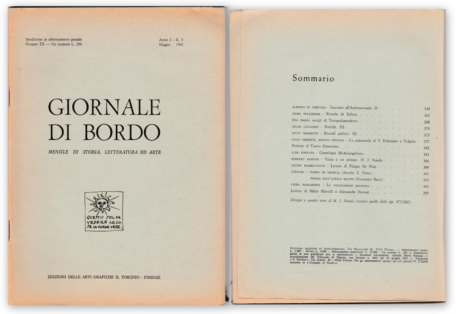 Giornale Di Bordo Mensile Di Storia Letteratura Arte Anno I N.8 1968