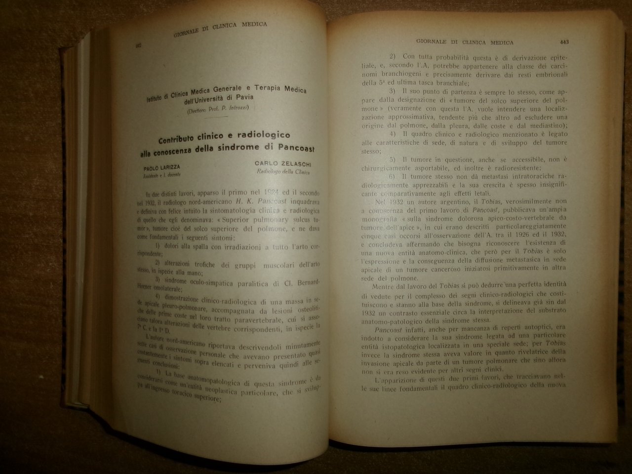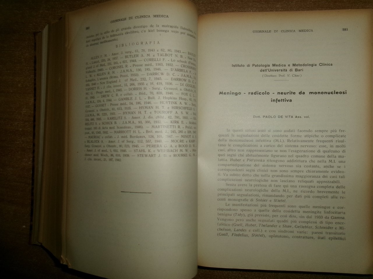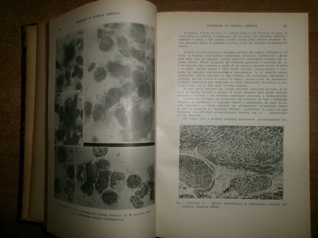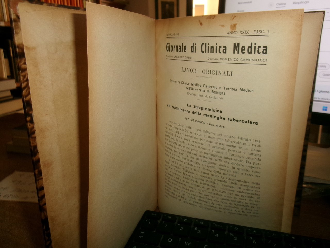 AA. VV. GIORNALE di CLINICA MEDICA. Fondatore UMBERTO GABBI - Direttore DOMENICO CAMPANACCI. 11 fascicoli legati assieme in un volume in-8°, m-tela con titolo in oro al dorso, 1238 pp. con numerose figure in nero n.t. e tavole f.t. ex libris nella prima bianca. Uff. salone sporta 2
