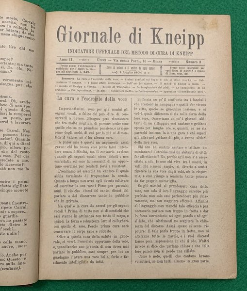 GIORNALE DI KNEIPP, INDICATORE UFFICIALE DEL METODO DI CURA DI MONS. S. KNEIPP, (ANNO SECONDO)