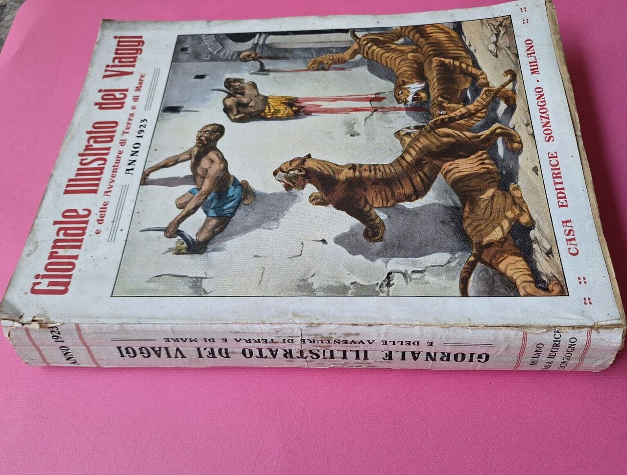 GIORNALE ILLUSTRATO DEI VIAGGI AVVENTURE DI TERRA E MARE ANNO 1923 SONZOGNO In 4°, legatura editoriale con copertina cartacea illustrata, ill. a colori e in b/n, copertine originali allegate.In ottime condizioni, lievissimi segni alla copertina. Pagine fresche e pulite.