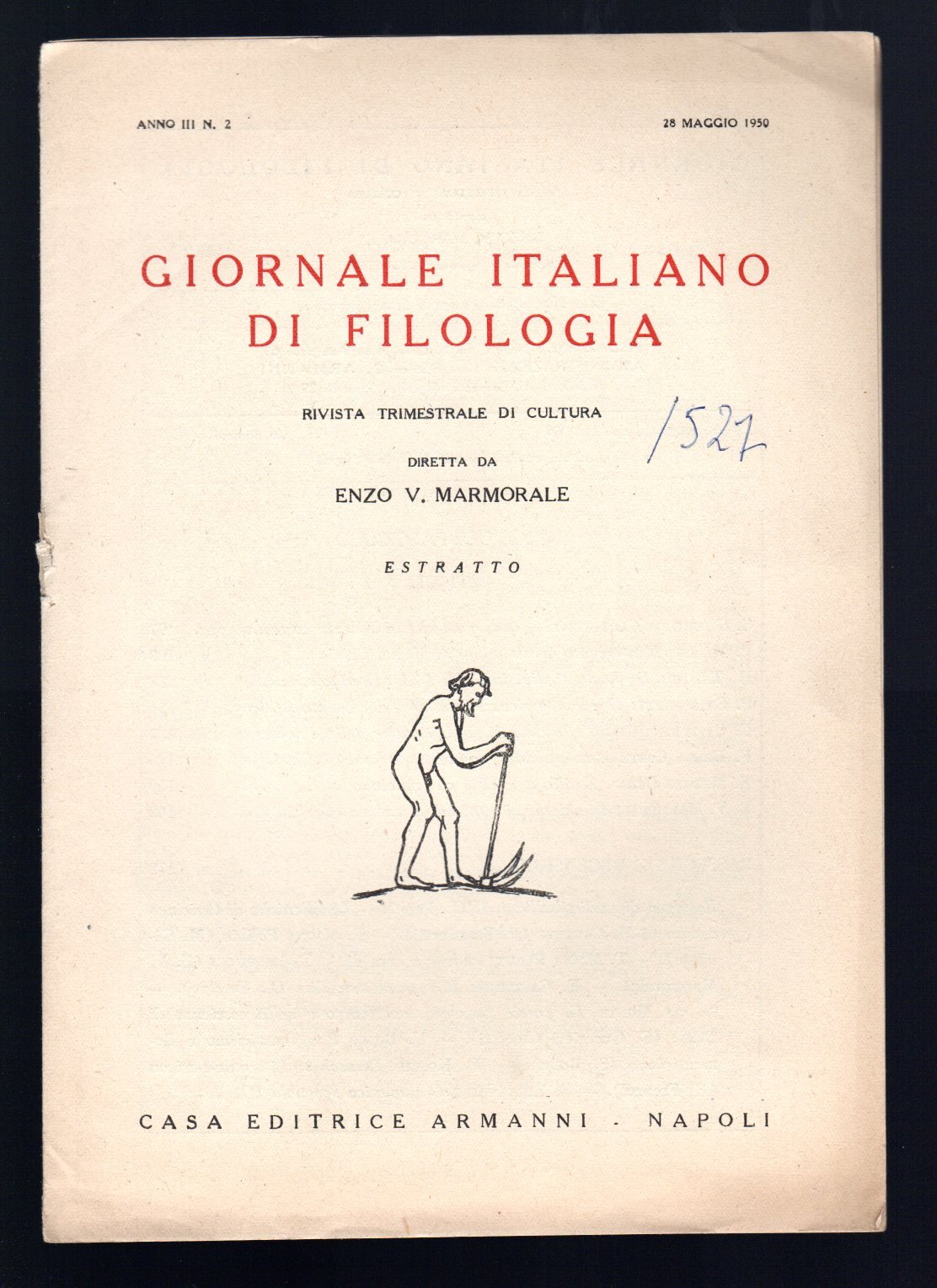 Opuscolo vintage. Estratto, Anno III n. 2. Pagine licenziate. Ingiallimento, segni di biro in copertina e in prima pagina. Usura da scaffale. Ordinario segno del tempo.