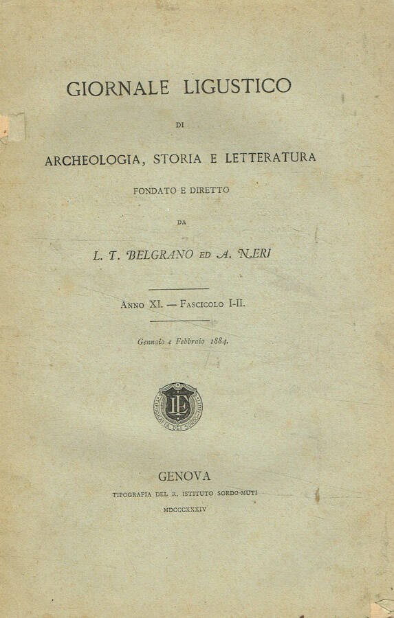 Giornale ligustico di archeologia, storia e letteratura. Anno XI, fasc.I-II, gennaio-febbraio 1884