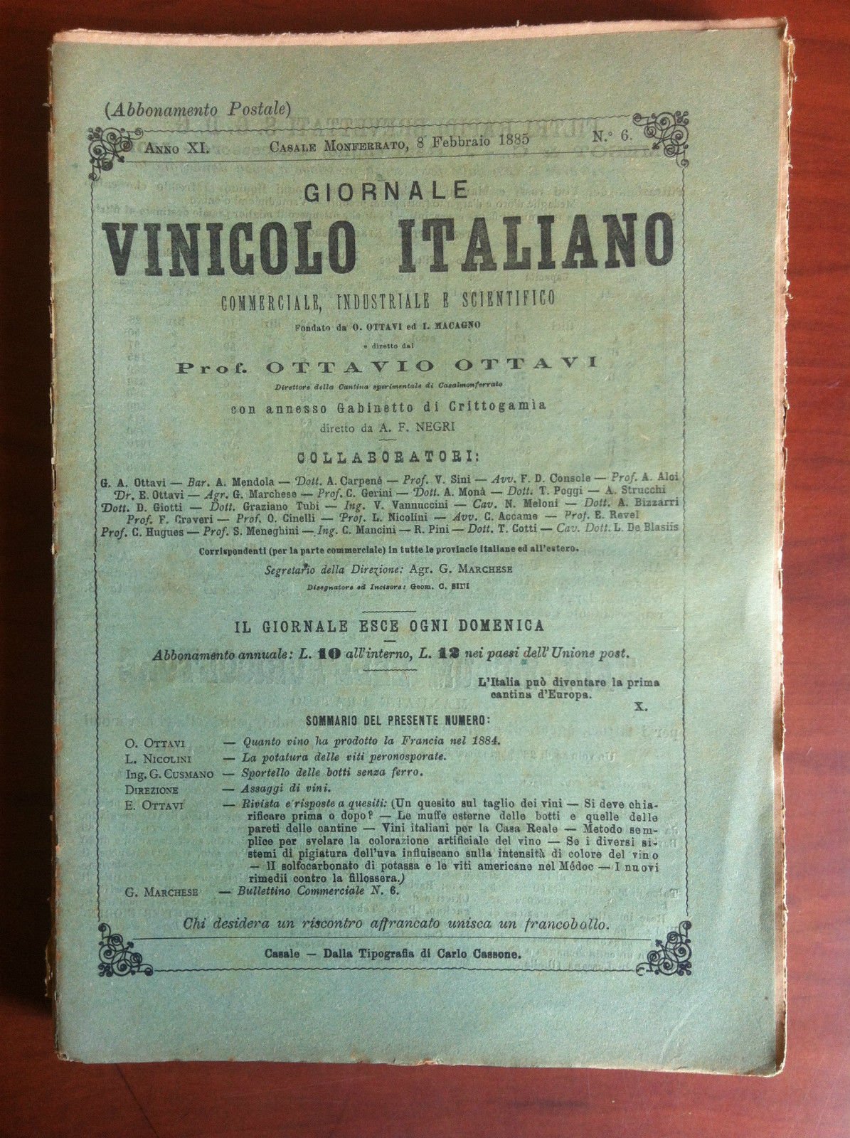 Giornale Vinicolo Italiano Anno XI n^6 Casale Monferrato 8 Febbraio 1885- E14717