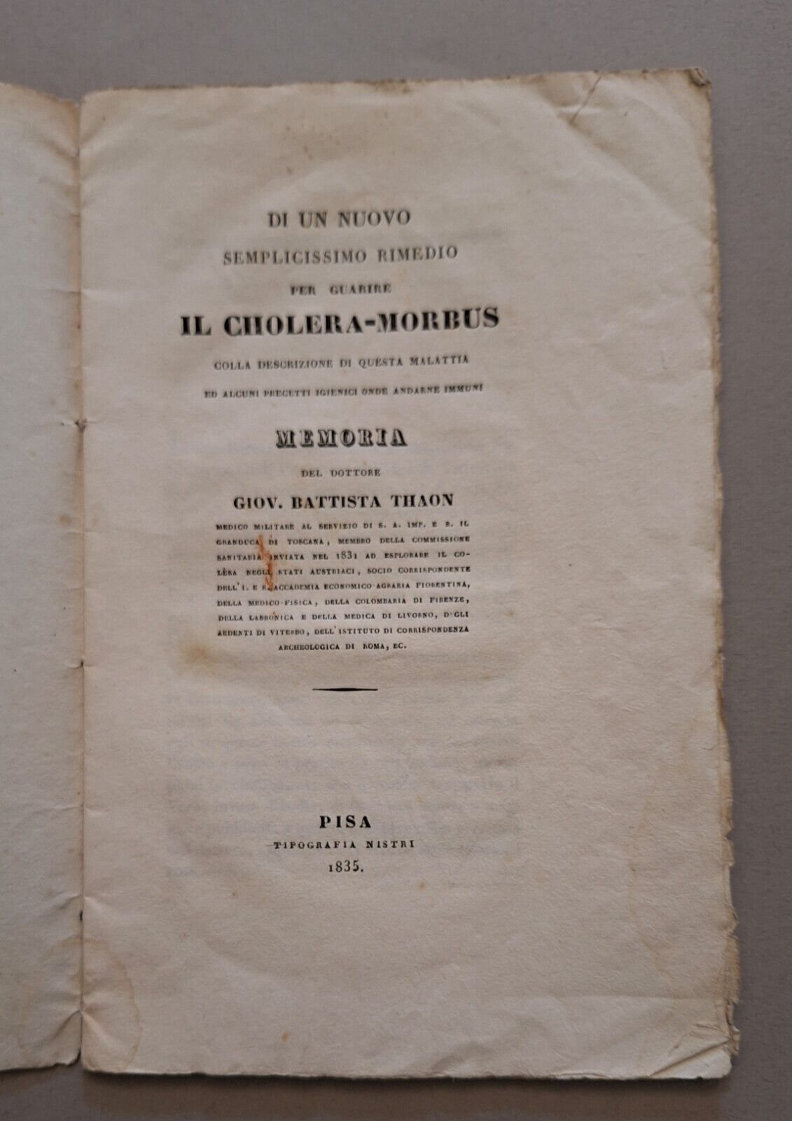 GIOV. BATTISTA THAON UN NUOVO METODO PER GUARIRE IL CHOLERA MORBUS NISTRI 1835