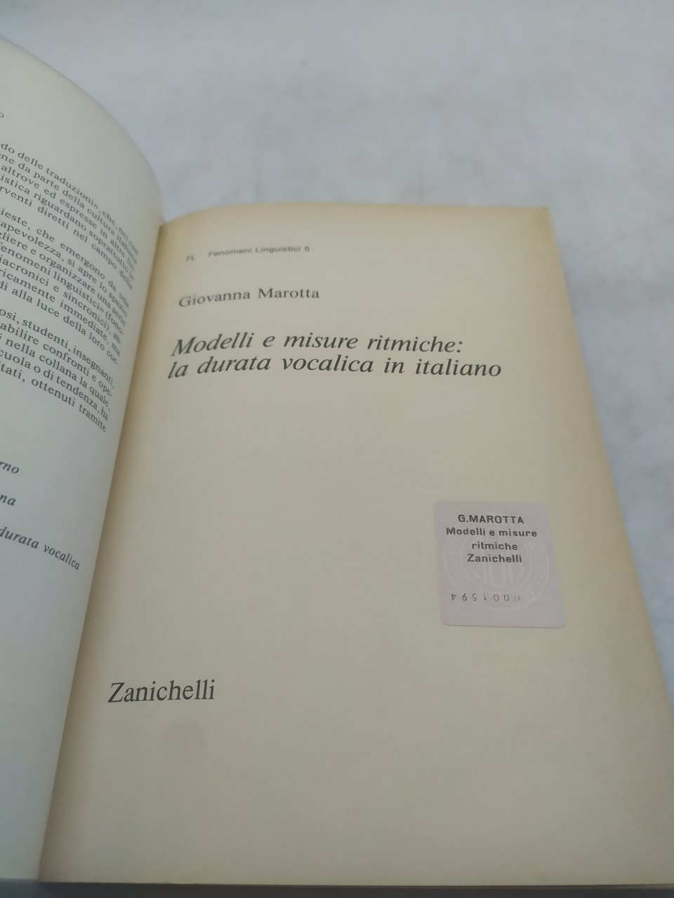 giovanna marotta modelli e misure ritmiche la durata vocalica in italiano . , zanichelli 1985 italiano, pp. ^^^brossura