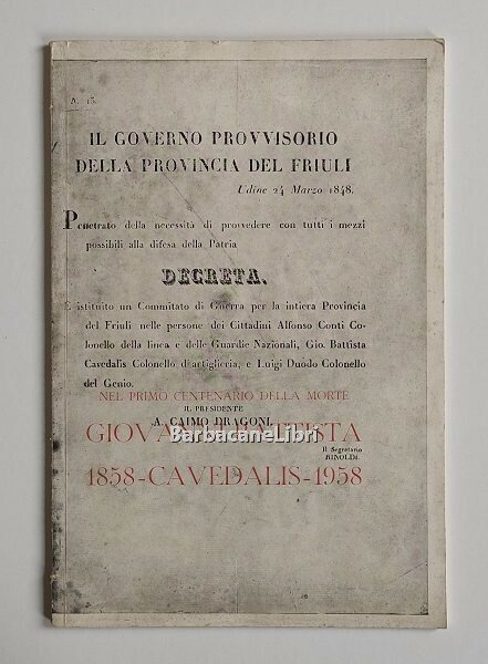 Giovanni Battista Cavedalis. Nel primo centenario della morte 1858-1958