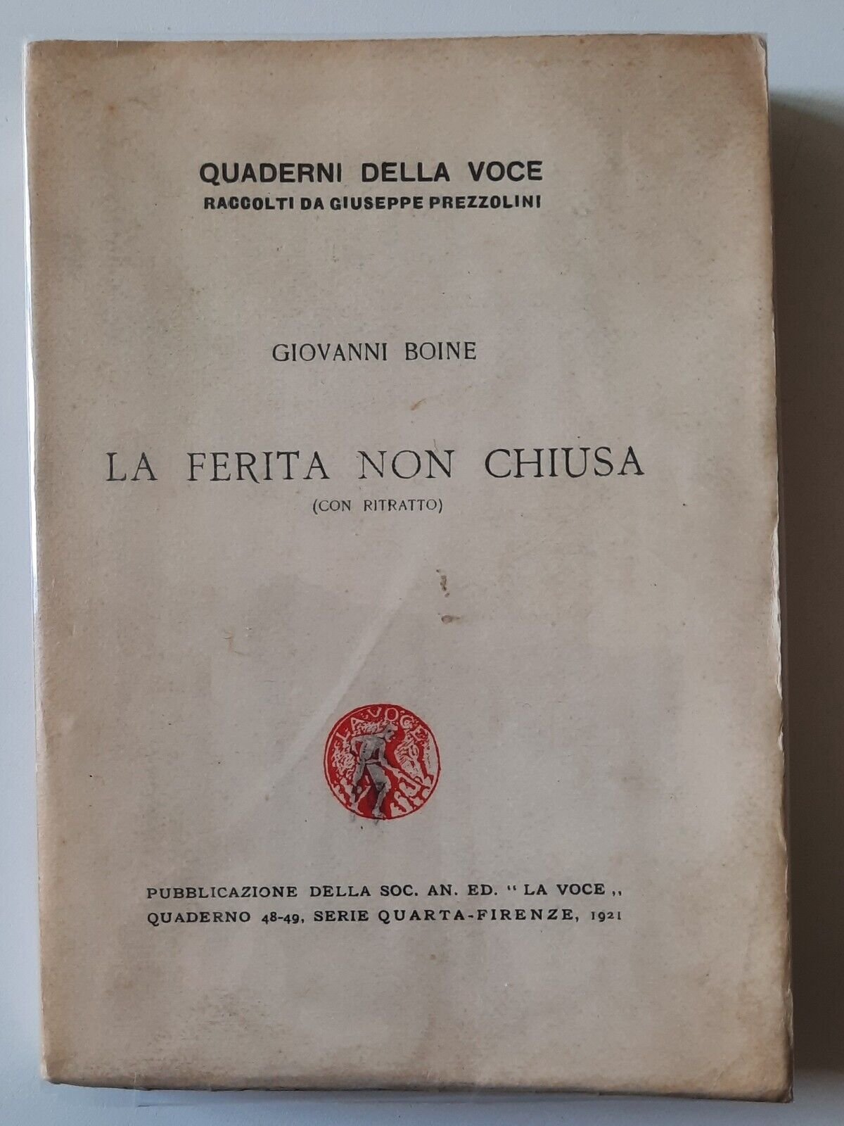 GIOVANNI BOINE LA FERITA NON CHIUSA SOC. ED. LA VOCE 1921 QUADERNI DELLA VOCE