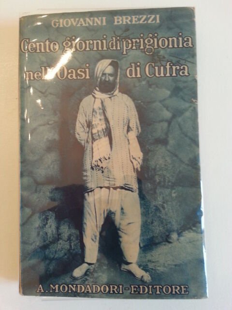 GIOVANNI BREZZI CENTO GIORNI DI PRIGIONIA NELL'OASI DI CUFRA MONDADORI 1930In 8°, pag. 243, legatura editoriale, sovracopertina illustrata, ill. in b/n, 2 carte ripiegate.