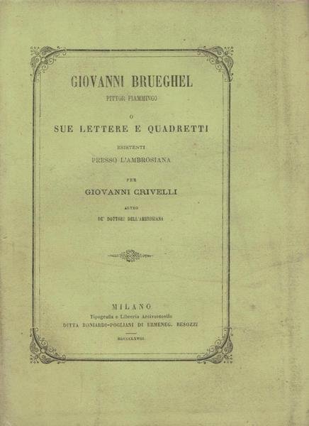 *Giovanni Brueghel, pittor fiammingo, o sue lettere e quadretti esistenti presso l'Ambrosiana per Giovanni Crivelli 1868