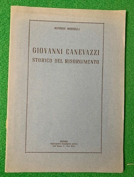 In 4°; 21, (3) pp. Brossura editoriale. Prima edizione di questa monografia dedicata a Giovanni Canevazzi, celebre storico risorgimentale modenese.