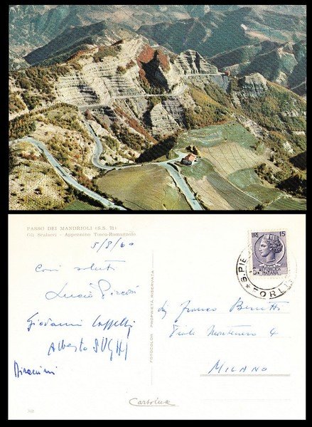 cartolina firmata da Giovanni Cappelli e da Alberto Sughi datata 5 Agosto 1960 spedita a Franco Berutti; buon es.