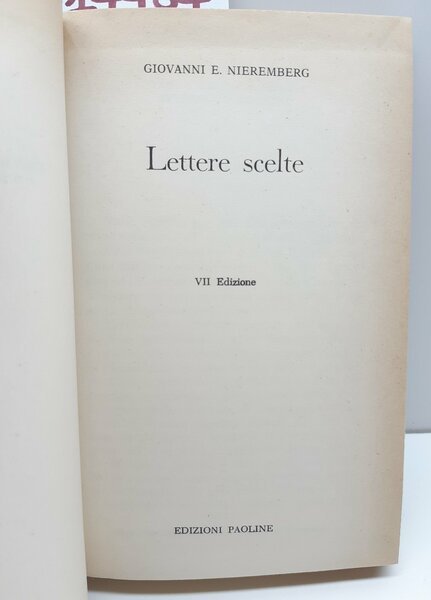 Giovanni E. Nieremberg Lettere scelte 7° ed. Paoline 1963