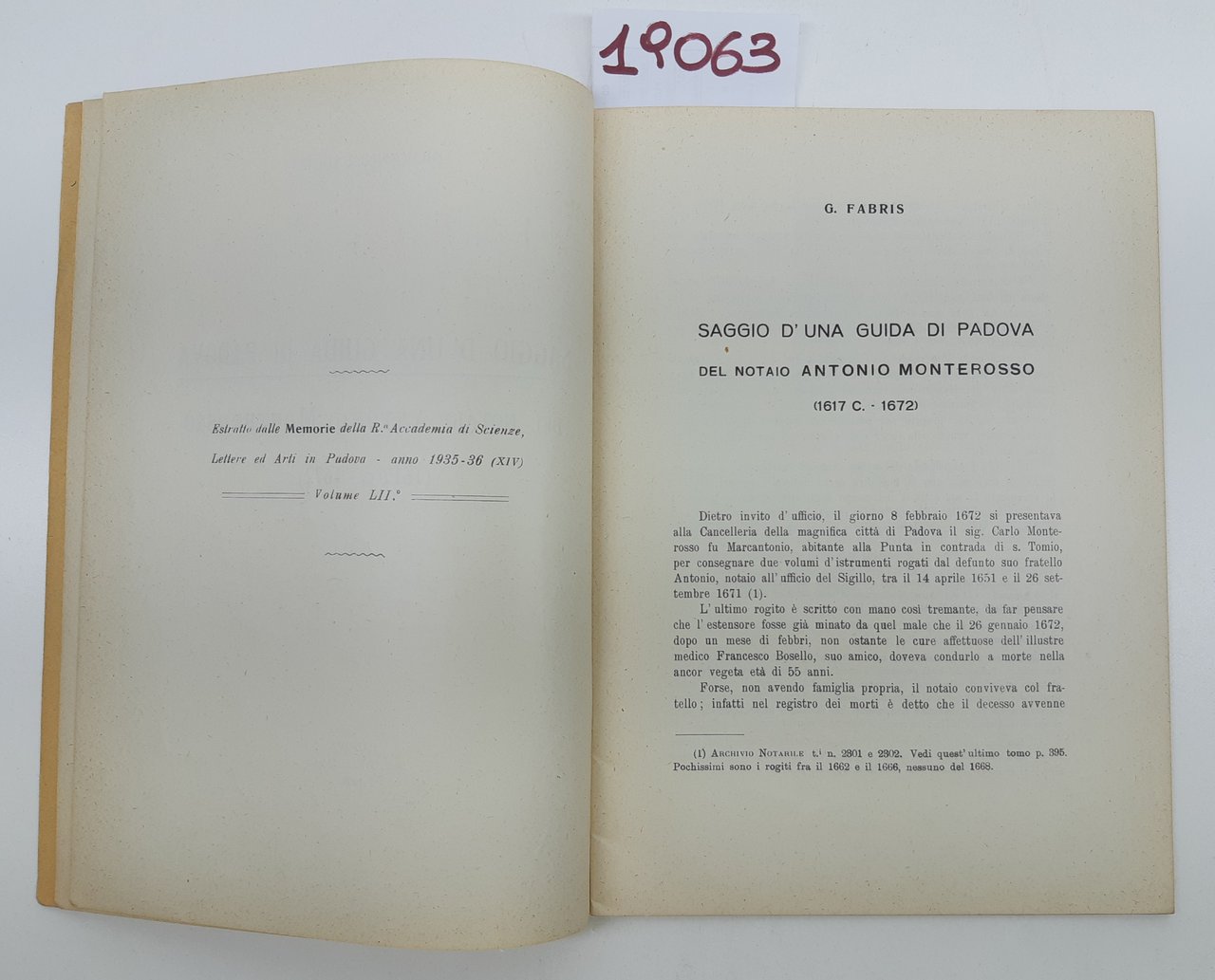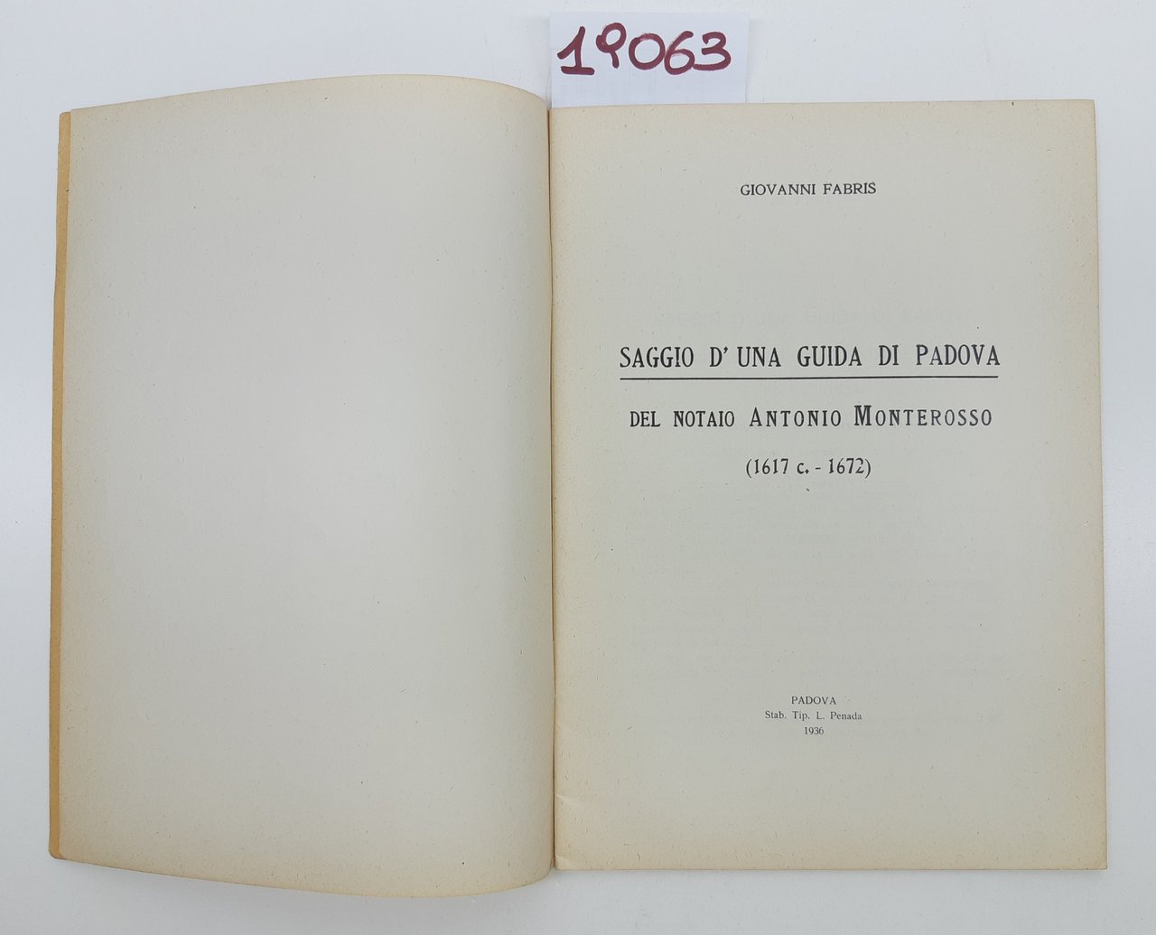 Giovanni Fabris Saggio d'una guida di Padova del notaio Antonio Monterosso (1617 1672) Penada 1936