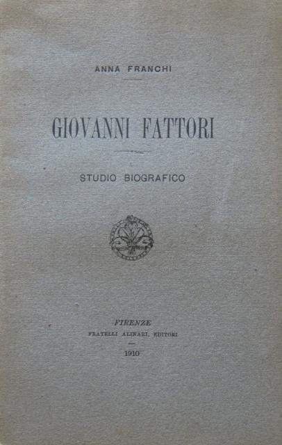 Fratelli Alinari Editori, Firenze, 1910. In 8vo piccolo, pp. 69 + 1 (“Onorificenze avute da Giovanni Fattori”), ritratto fot. in antip., bross. edit. in carta. Ancora intonso, ottima conservazione.