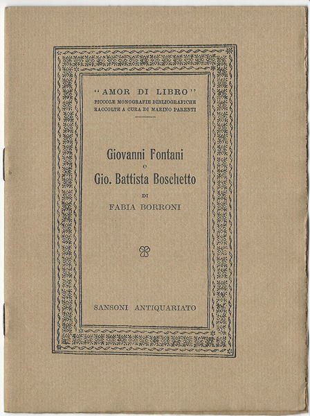 Giovanni Fontani e Gio. Battista Boschetto Contributo alla storia della tipografia pisana del secolo XVII