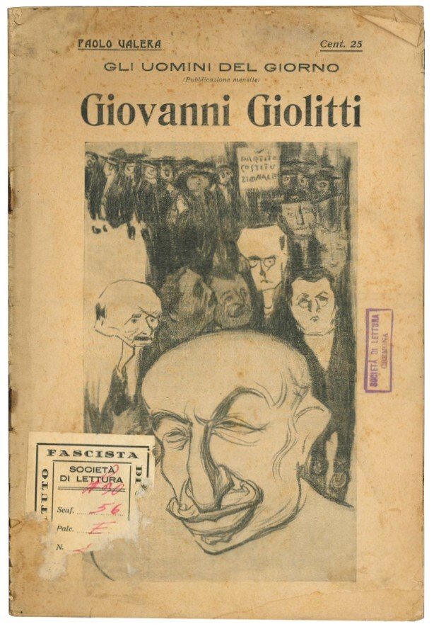 Mm. 246x166. Pp. 31. Con fotografie in b/n di personaggi autorevoli con Francesco Crispi, Giovanni Giolitti, Gugliemo Gladston ed altri ancora. C. uniformemente brunita, lievi mancanze ai margini di alcune cc. Alla prima p. presente timbro 'Società di lettura Cremona' e una scritta monografica riportante un codice. Brossura editoriale illustrata. Piatti usurati e fioriti, dorso con mancanze. Al piatto anteriore presente etichetta della 'società di lettura', parzialmente mancante. Prima edizione. Il volume appartiene alla collezione "Gli uomini del giorno", nr. 2.