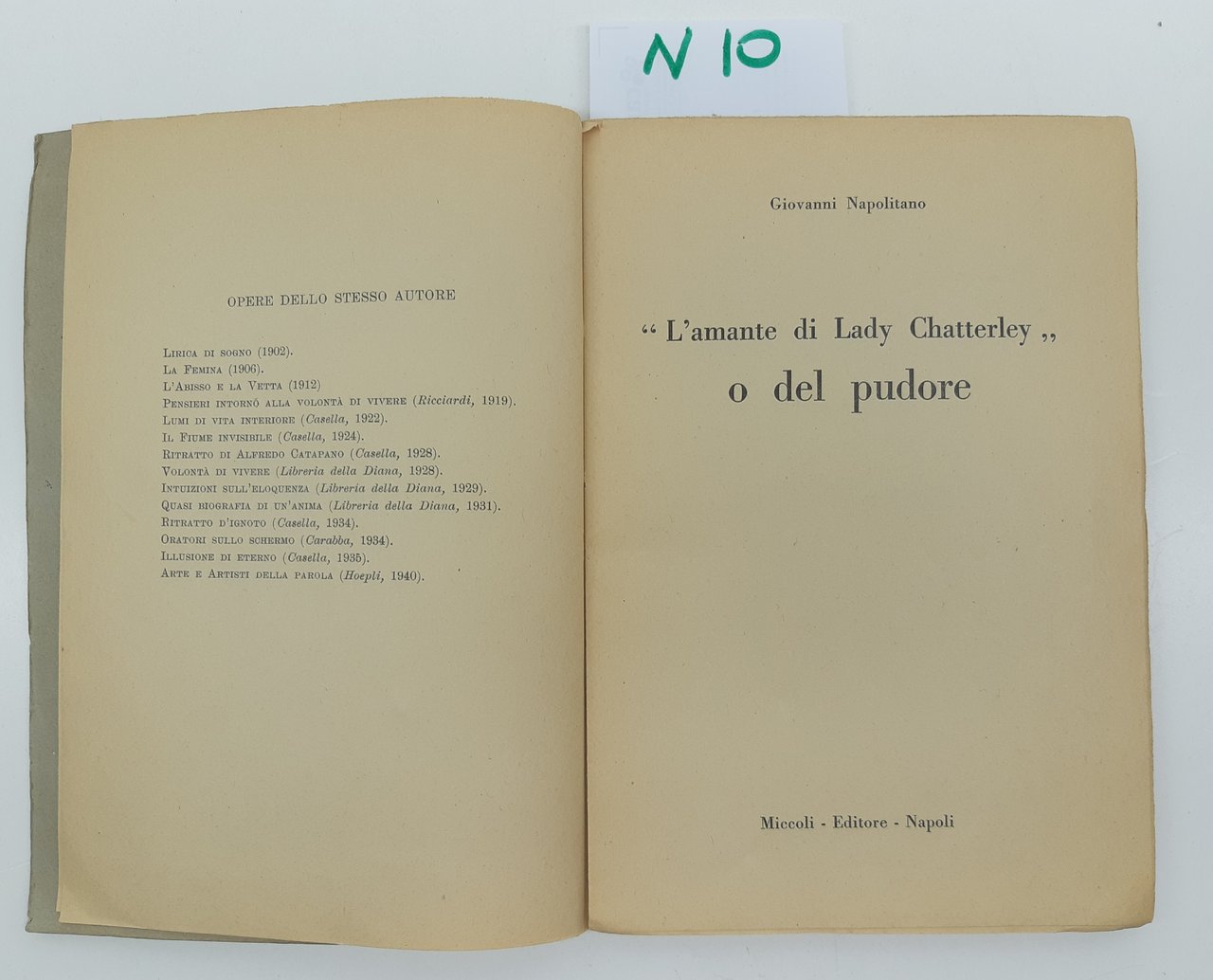 Giovanni Napolitano L'amante Di Lady Chatterley O Del Pudore Miccoli 1948