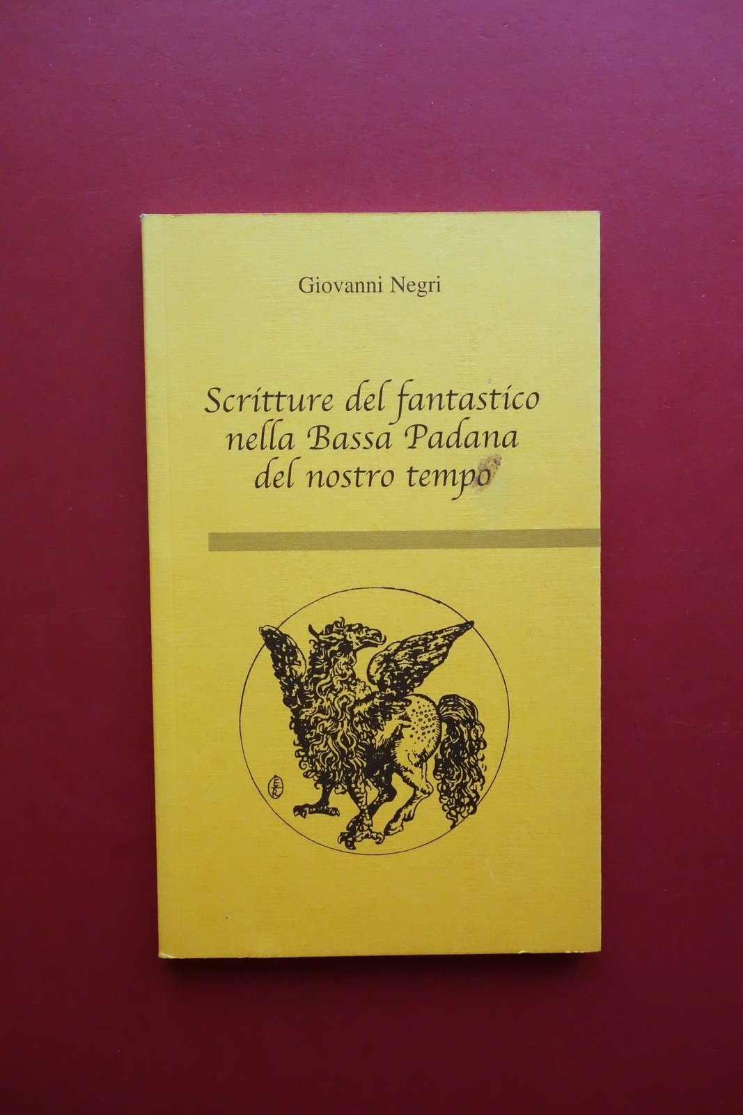 Giovanni Negri, Scritture del fantastico nella Bassa Padana del nostro tempo Associazione Bondeno Cultura - Fondazione Cassa di Risparmio di Cento, Cento (Ferrara) 2002, cm 21x12,5, pp. 78, brossura ed. ill. in b/n con bandelle. Condizioni di conservazione Molto ben conservato, poco o nulla sfogliato; solamente brossura ant. con una piccola leggera macchietta. Interni ottimi. SETT85.L7613 N
