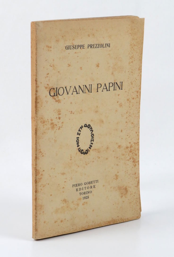 LIBROPrima edizione Gobetti.Fioriture ai piatti (soprattutto al piatto anteriore) e carte leggermente brunite, altrimenti esemplare molto buono, intonso.Seconda edizione riveduta del «Discorso su Giovanni Papini» apparso nel 1915 per la Libreria della Voce. In copertina la data è 1925. Quando nel 1915 Giuseppe Prezzolini diede alle stampe questo suo “Discorso su Giovanni Papini” la frattura tra i due amici e intellettuali che si erano incontrati e sostenuti dando vita nel 1908 alla straordinaria avventura della rivista «La Voce», si era creata già da tempo. Papini – con Ardengo Soffici – aveva infatti consumato il tradimento uscendo dal cerchio vociano per fondare «Lacerba», quindicinale che dal 1913 all’entrata dell’Italia nel primo conflitto mondiale sarebbe stata casa e fucina degli spiriti futuristi o più genericamente avanguardisti. E di questo tradimento – estetico e valoriale insieme – è intriso il “Discorso” di Prezzolini, impegnato a ripercorre la complessa e a volte confusa e contradditoria vicenda umana e letteraria di un uomo che ormai ai suoi occhi appariva smascherato: «Ci sono nella sua vita, come nella vita di tanti, cose a suo onore e a suo danno […]. Gli uomini come Papini sono una forza. Io credo d’aver fatto sentire come sia torbida, come in fondo ad essa sia istinto volgare spesso e debolezza, ma mi pare anche di aver fatto intendere bene come più alta perciò sia l’altezza da lui raggiunta, e più straordinaria la creazione. In mezzo a tante ragioni di scendere, fra tante cadute (e chi l’ha aiutato, si faccia avanti), c’è stato in lui un progresso. È un uomo libero? Quel che è certo, è un uomo liberato. In se stesso ha trovato la forza per ascendere. Raramente tanta disperazione e mancanza di fede e naturale freddezza e facile media fortuna di scritture si trovavano insieme riunite; raramente un uomo ha fatto tanto male a se stesso come Papini; ma per questo appunto bisogna rispettarlo e amarlo. Forse è tardi per ciò. Papini è un uomo che si è abituato a non essere amato: come quei ragazzini maltrattati dalla famiglia che finiscon per temere una carezza, sarebbe capace di sospettare e di offendere. Ma in lui c’è sempre questo fondo inappagato. Cercate nei suoi libri e lo troverete [l’abbiamo veduto insieme]. Nei suoi stessi articoli più odiosi non manca questo motivo. Ed è forse per questo che li ha scritti». Pubblicato per la prima volta dalla «Libreria della Voce», una seconda edizione del «Discorso su Giovanni Papini» sarebbe apparsa nel 1925 grazie a Piero Gobetti, amico di Prezzolini benché anche con lui – e con la sua intera generazione così carica di slanci protofascisti – lucidamente e severamente critico