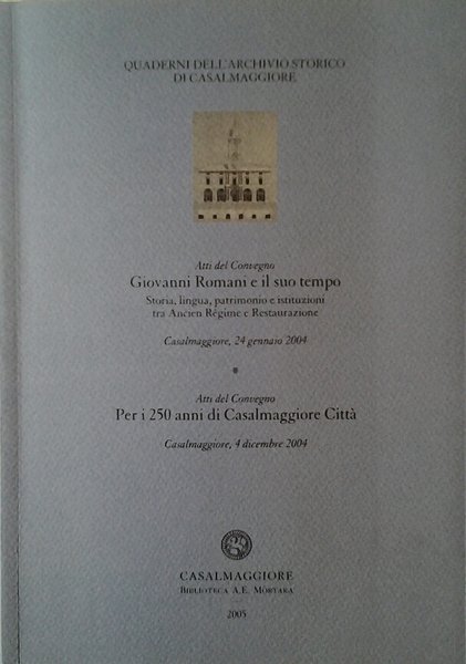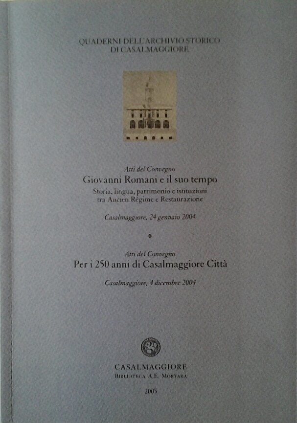GIOVANNI ROMANI E IL SUO TEMPO. - Storia, lingua, patrimonio e istituzioni tra Ancien Regime e Restaurazione. Atti del convegno per i 250 anni di Casalmaggiore Città. Quaderni dell'archivio Storico di Casalmaggiore.