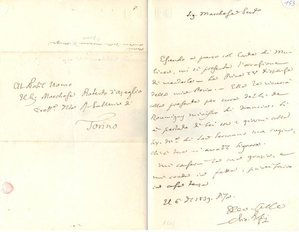 Giovanni Rosini (1776, 1855). Letterato toscano. Tra le sue opere troviamo La signora di Monza e La sventurata di Monza, Luisa Strozzi, Il conte Ugolino della Gherardesca e i Ghibellini di Pisa. Lettera manoscritta e firmata.