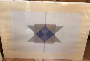 Bella serigrafia del pittore Giovanni Soccol con dedica all'amico Bortoluzzi. Bel foglio . Mis. cm 69x101