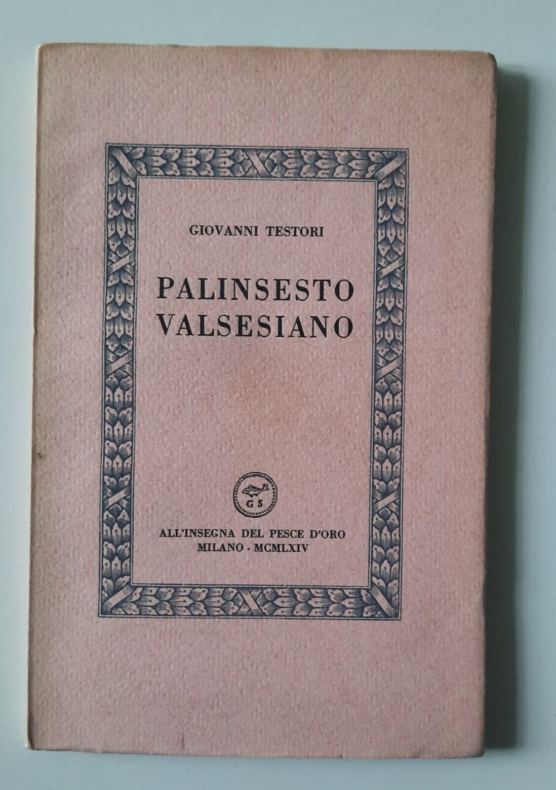 GIOVANNI TESTORI PALINSESTO VALSESIANO ALL'INSEGNA DEL PESCE D'ORO 1964In 8° piccolo, legatura editoriale, copertina illustrata, ill. in b/n.